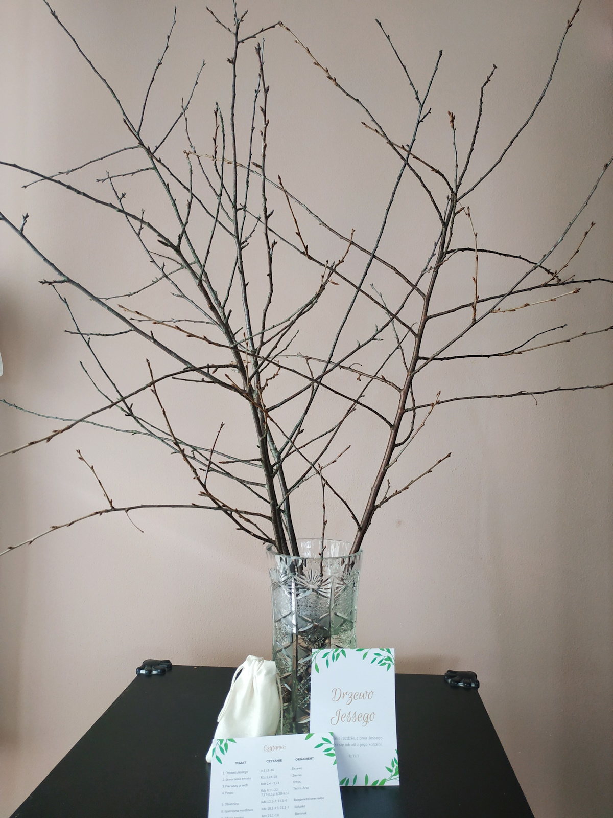Aby przygotować własne „drzewko Jessego” będziecie potrzebować gałązki jakiegoś kwitnącego drzewa (jabłoni, wiśni, śliwy, gruszy lub forsycji), którą w sobotę przed I niedzielą adwentu włożycie do wazonu z wodą. Potem przy zapalonej świecy możecie każdego dnia wspólnie odczytywać fragment Pisma Świętego. Po lekturze dzieci mogą wykonać, a następnie zawiesić na gałązce ornament – dzięki temu będzie ona nie tylko adwentową dekoracją, ale i przypomnieniem o wspólnym oczekiwaniu. A być może w okolicy świąt Bożego Narodzenia Wasze drzewko Was zaskoczy…